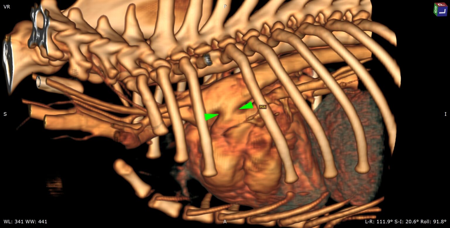 Reconstruction tridimensionnelle d’une persistance du canal artériel chez un chien.