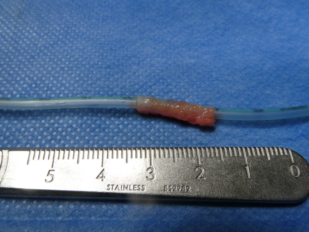 En bas à gauche, néo-urètre tubulaire prêt à être implanté.