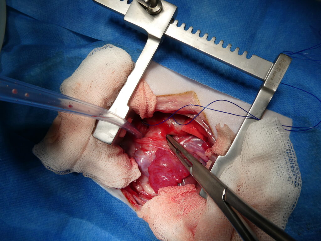 Lorsque l’indication est posée, le traitement vise à fermer ce canal de façon fiable, afin de supprimer la dérivation et de permettre une récupération cardio-respiratoire. Ces interventions sont réalisées dans un cadre rigoureux, avec une planification précise, une anesthésie adaptée, une surveillance peropératoire et postopératoire attentive, et un suivi clinique et échographique, dans l’objectif d’obtenir une amélioration durable de la qualité de vie de l’animal.