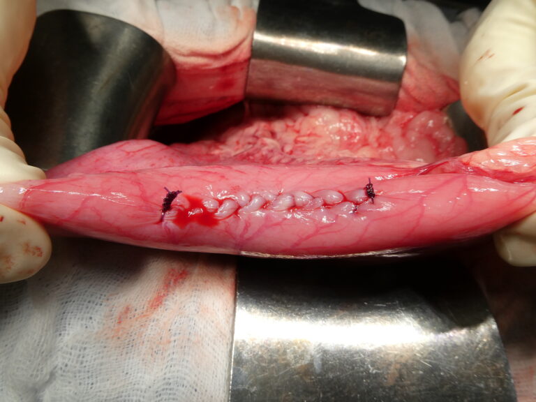 La chirurgie digestive représente une part importante de l’activité de tissus mous. Elle inclut notamment les entérotomies et les entérectomies, réalisées en cas de corps étrangers digestifs, de lésions intestinales, de nécrose ou de tumeurs.